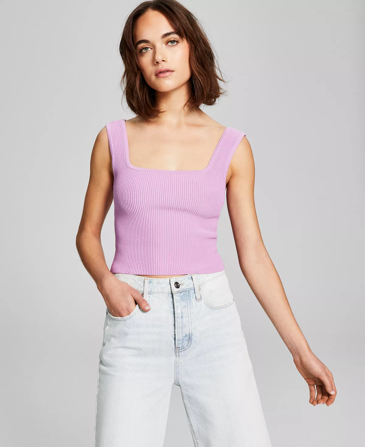 Wear this sleek top by And Now This like a second skin, the square neckline adds cleans lines, creating a chic, sleeveless topper for your favorite bottoms.
