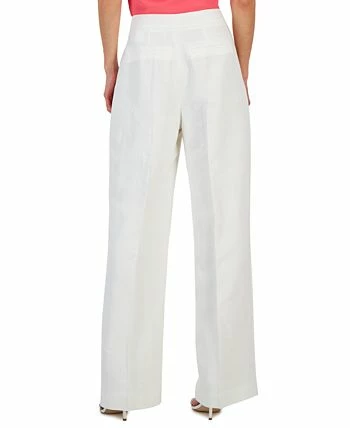 An asymmetrical close and chic wide-leg silhouette lend a sophisticated flair to these high rise pants from Anne Klein.