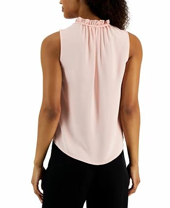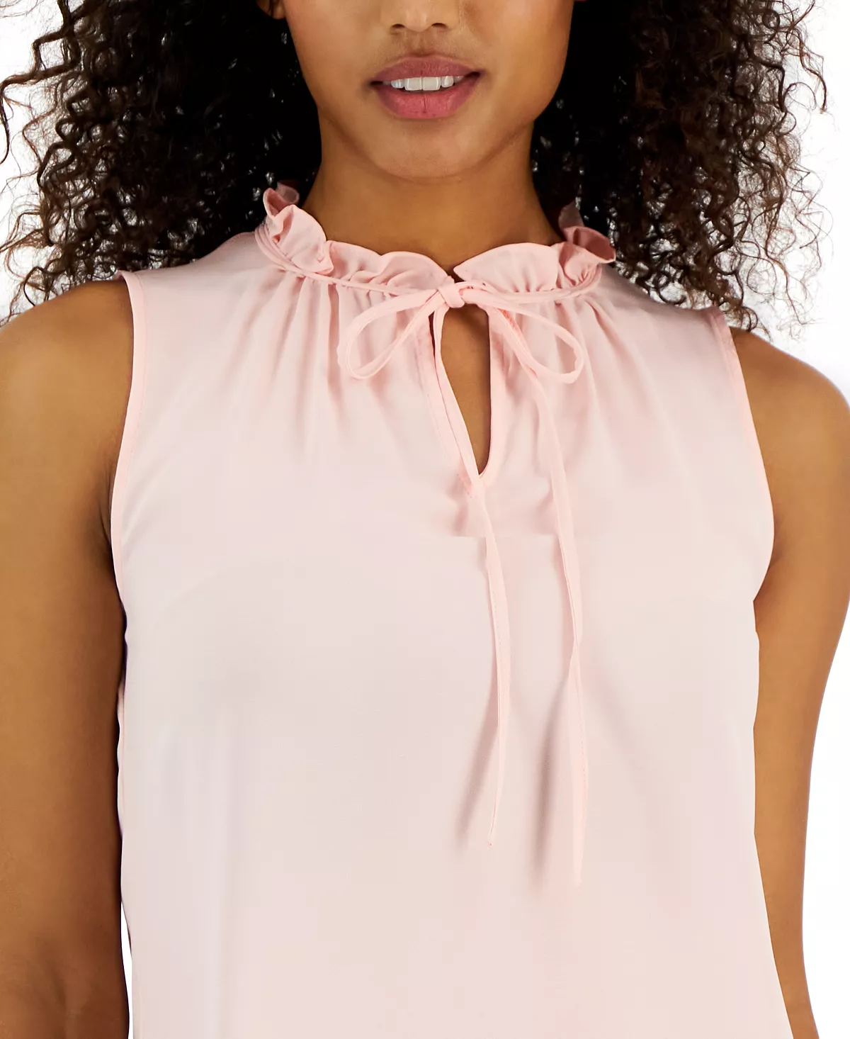 With a delicate ruffled neck and tie at the front, this sleeveless top from Anne Klein will help bring a new look to your work wardrobe.