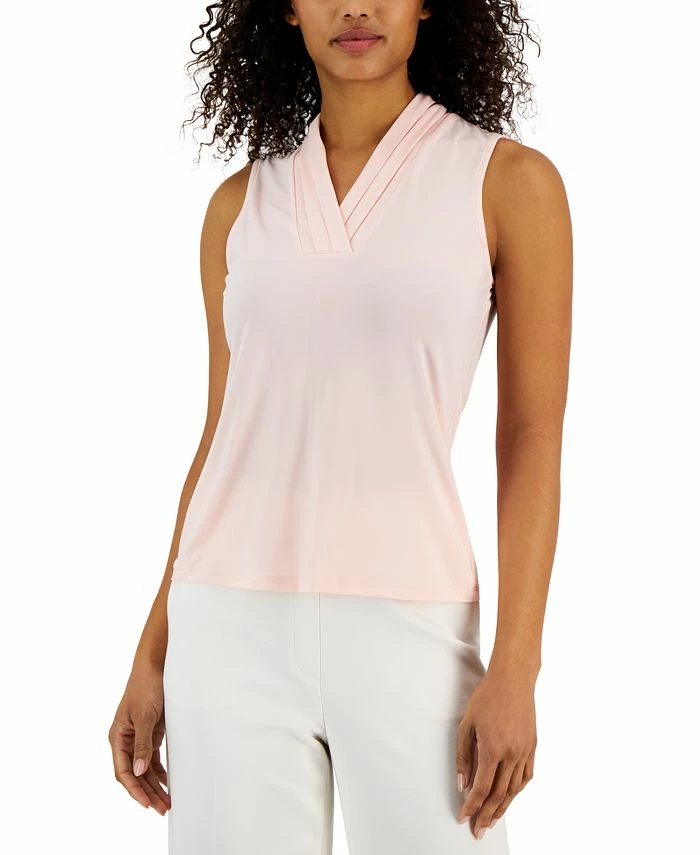 Anne Klein dresses up your basic sleeveless shell top with a chic triple-pleat neckline detail.