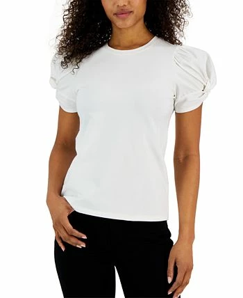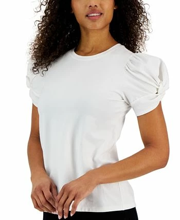 Twisted cuffs emphasize a short, puffed sleeve on this office-to-off-day top from Anne Klein.