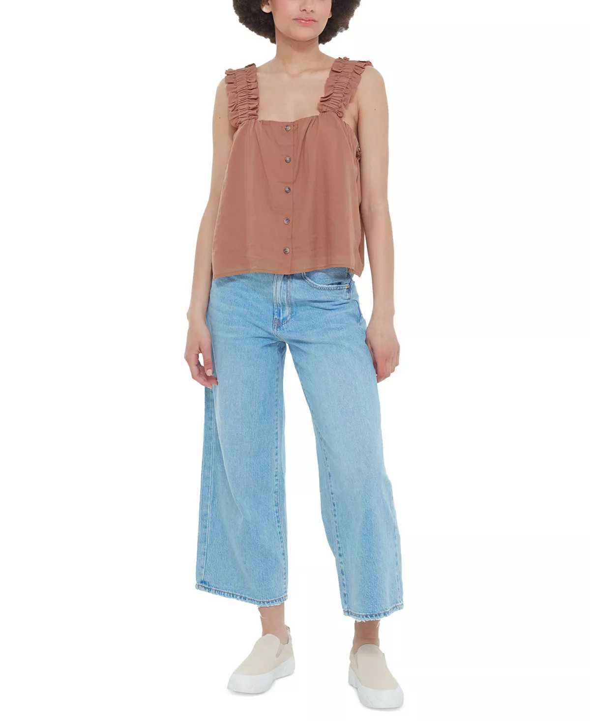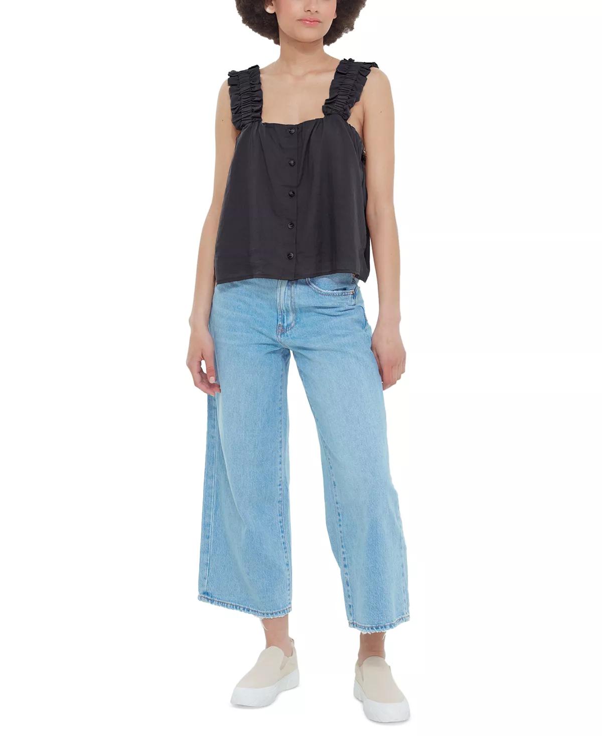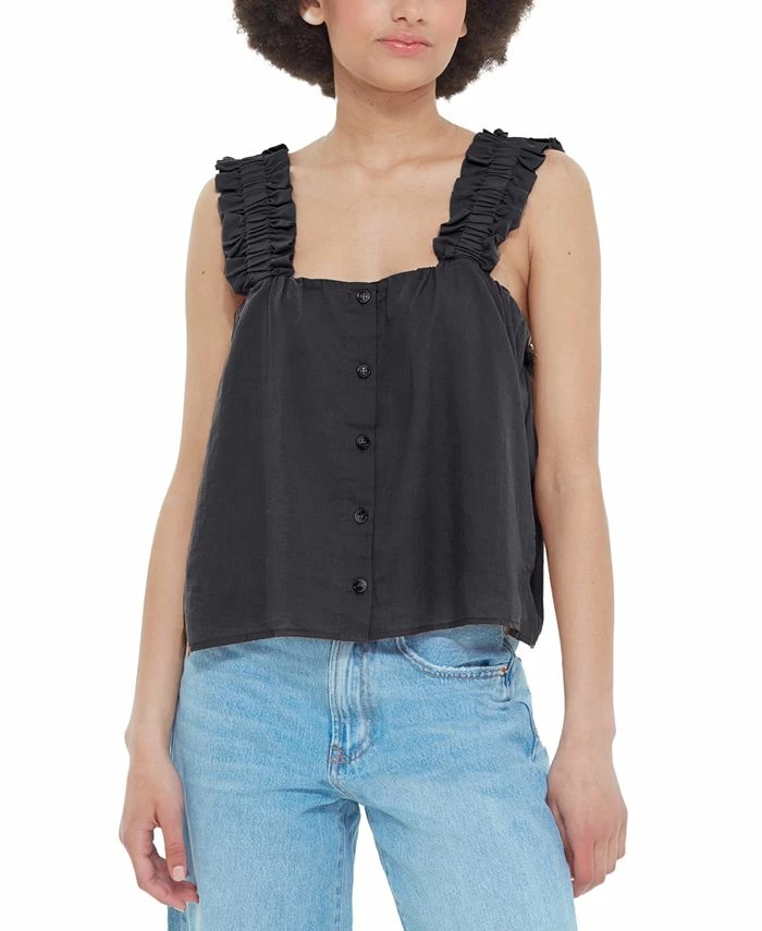 Ruffled elastic straps lend a little whimsy to this camisole from Black Tape, a softly shaped pick designed with a buttoned front.