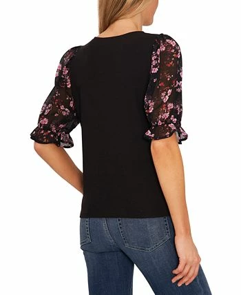 Printed puff sleeves beautifully frame this round-neck top from CeCe.