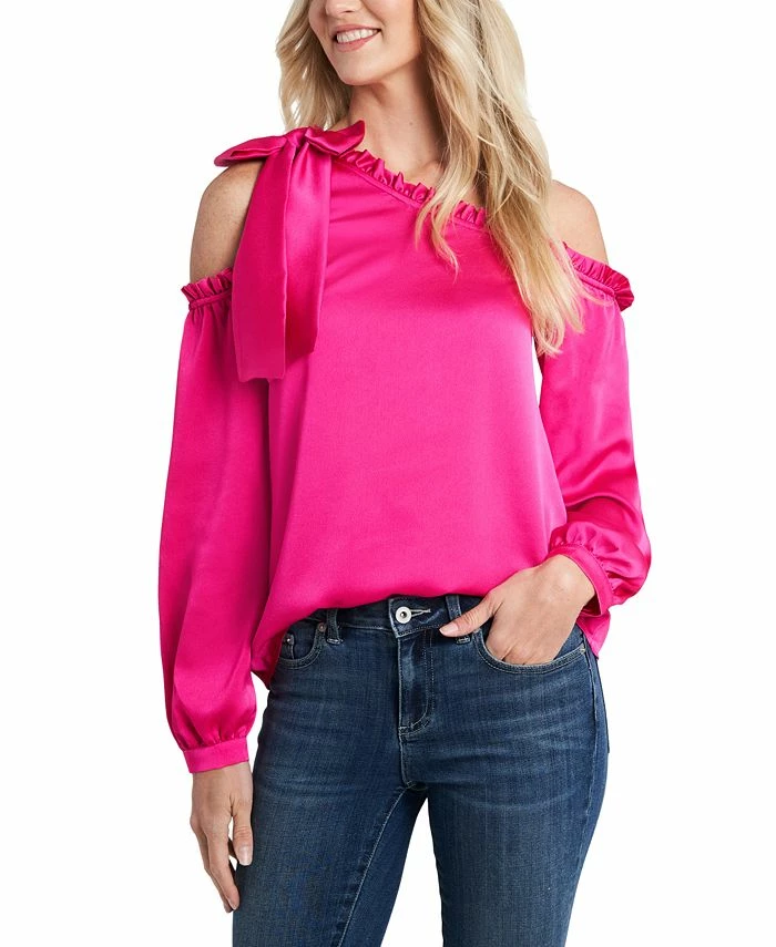Do the unexpected in this stunning blouse from CeCe, punctuated with a gorgeous bow and shoulder-baring accents.