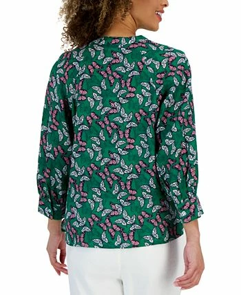 Woven linen brings an elevated feel and lasting style to this Charter Club top, a vibrant look in a butterfly print.