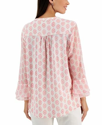 A medallion print freshens this lovely Charter Club look, a knit top with pintucks, ruffles and a pleat at the back for stylish drape.