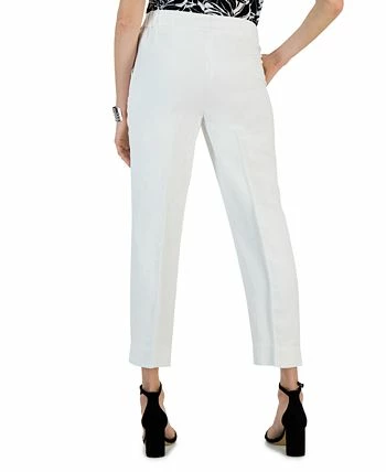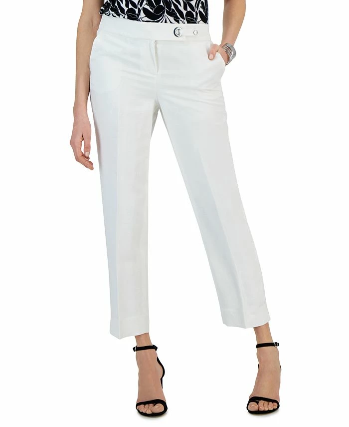 Kasper keeps your wardrobe stylishly chic with this pair of straight leg mid rise linen pants. Subtle side slits and an off-center snap loop closure brings the fashionable twist to your outfit with ease.