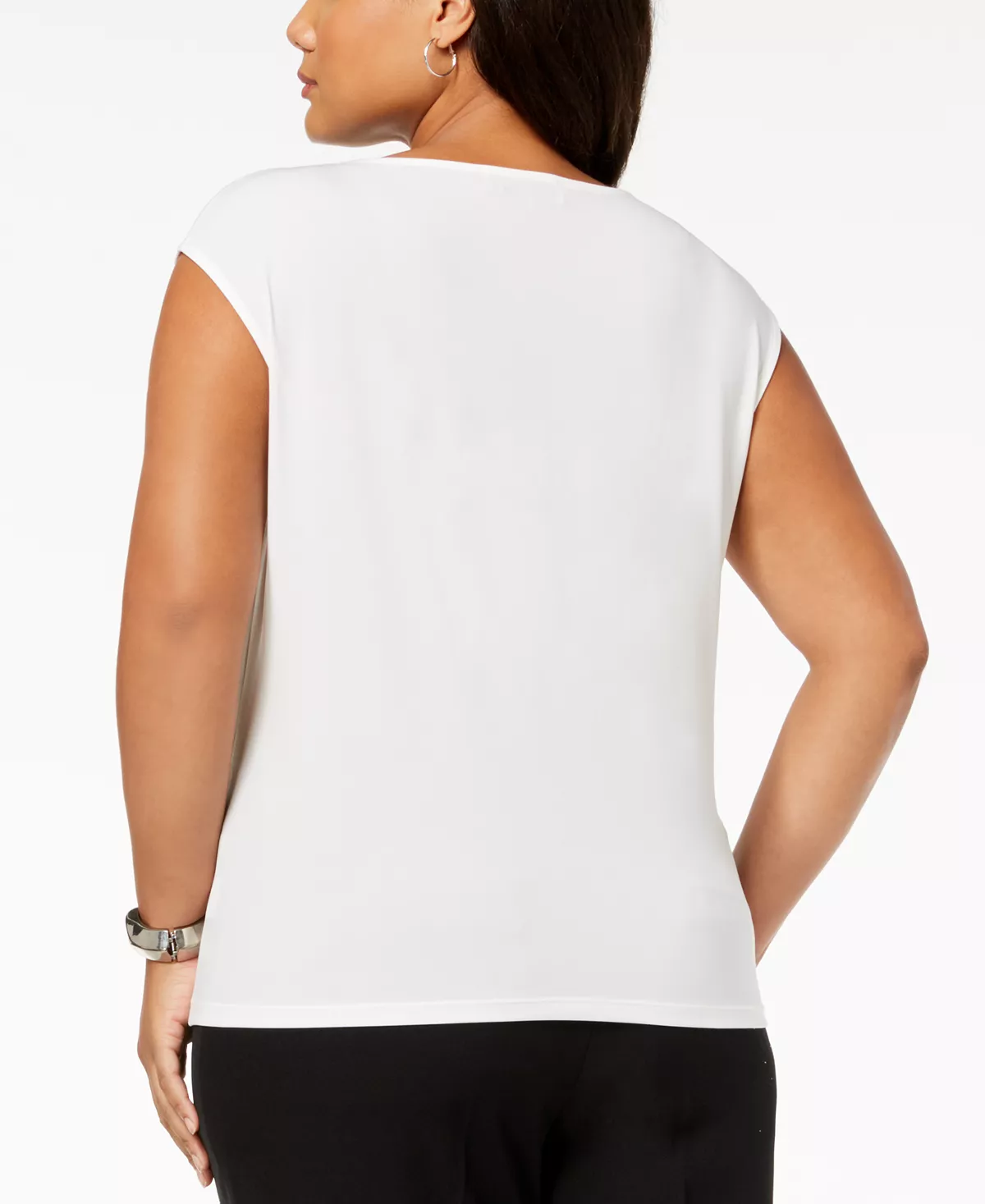 Looping through the cutout neckline, twist detail brings a modern flourish to the silhouette of Kasper’s plus size shell.