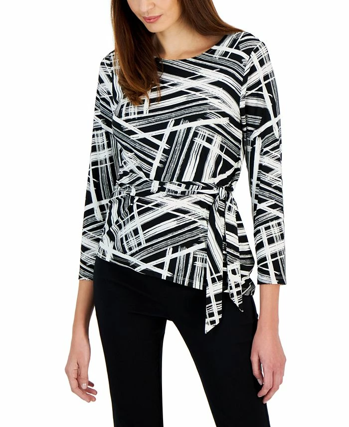 Achieve a sophisticated workweek look with this go-to Kasper top, styled with a waist-enhancing side tie.