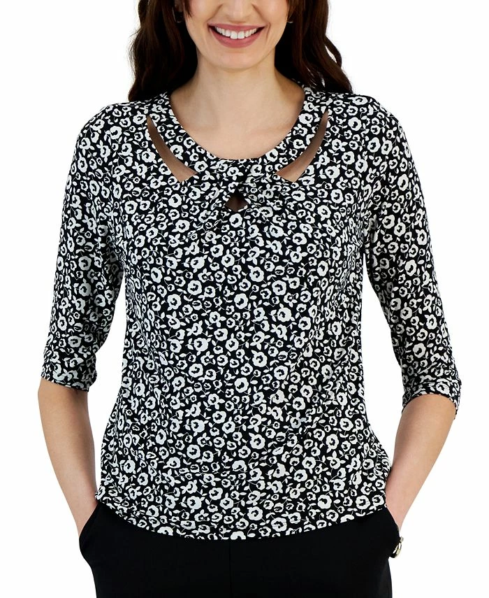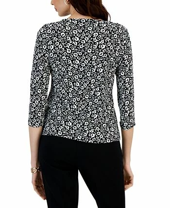 Chic details like a twist-detail neckline and pretty print bring polished style to your professional looks with this Kasper blouse.
