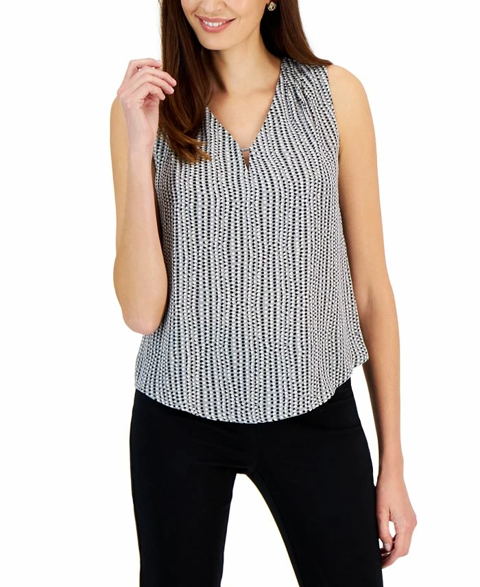 A stylish dot print and a bar ornament at the neckline enhance this essential workwear tank from Kasper.