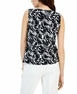 Kasper Printed Sleeveless Diamond Keyhole Blouse