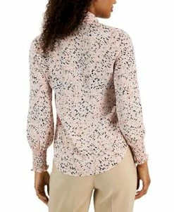 Anne Klein Women’s Abstract-Print Tie-Neck Smocked-Cuff Blouse