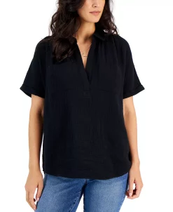 Style & Co Women’s Cotton Crinkle Gauze Top, Created For Macy’s