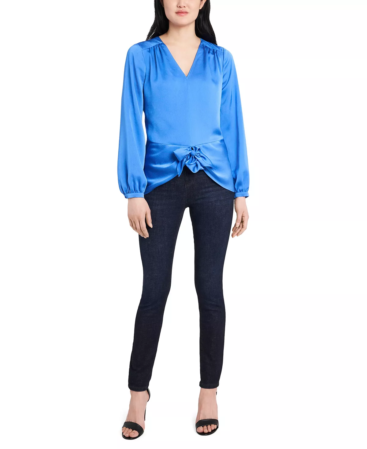 A brand new silhouette from Vince Camuto is a must have this season. Featured with a tie front and self double cuff with button.
